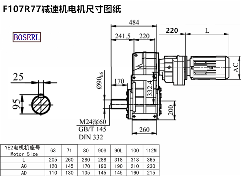 | 齒輪減速機 | F108RF78AM90S4 | F108R78DT112M4 | F108RF78YDP112M4 |