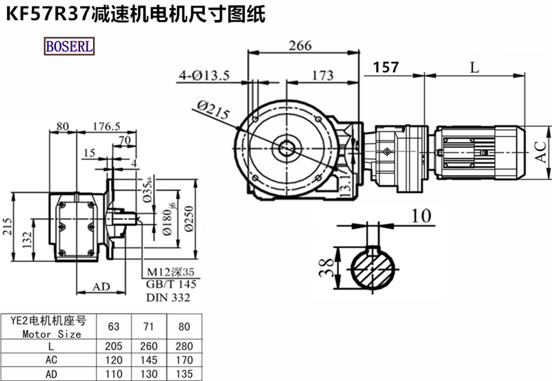 | 伺服電機(jī)減速機(jī) | KF58R38Y71M4 | KF58R38DRS71M4 | KF58RF38Y71M4 |