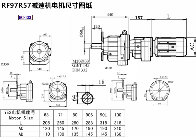 RF98R58DRN80M4_RF98R58DM71M4_RF98R58DVE90M4_RF98R58DR100M4減速機電機型號大全