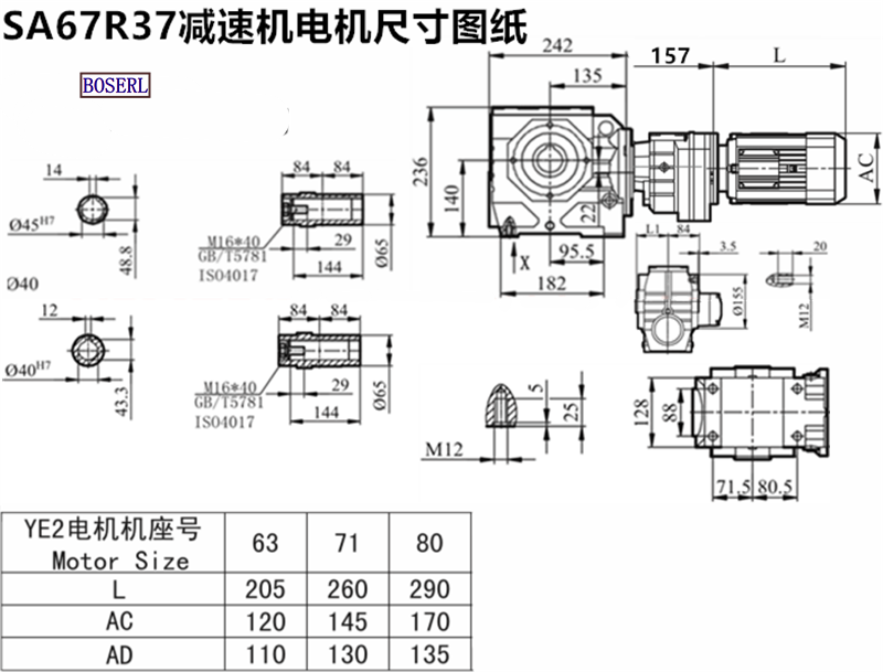| 自鎖減速機 | SA68R38Y63M4 | SA68R38DRS71M4 | SA68RF38Y0.37KW |